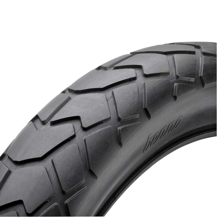 The Benno tyres feature a cut tread design, and excellent puncture protection. They seem to be magical in that they never wear out (*not proven by science)