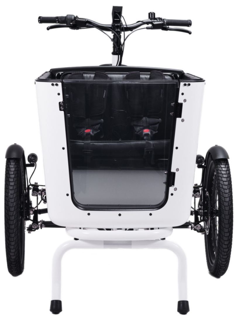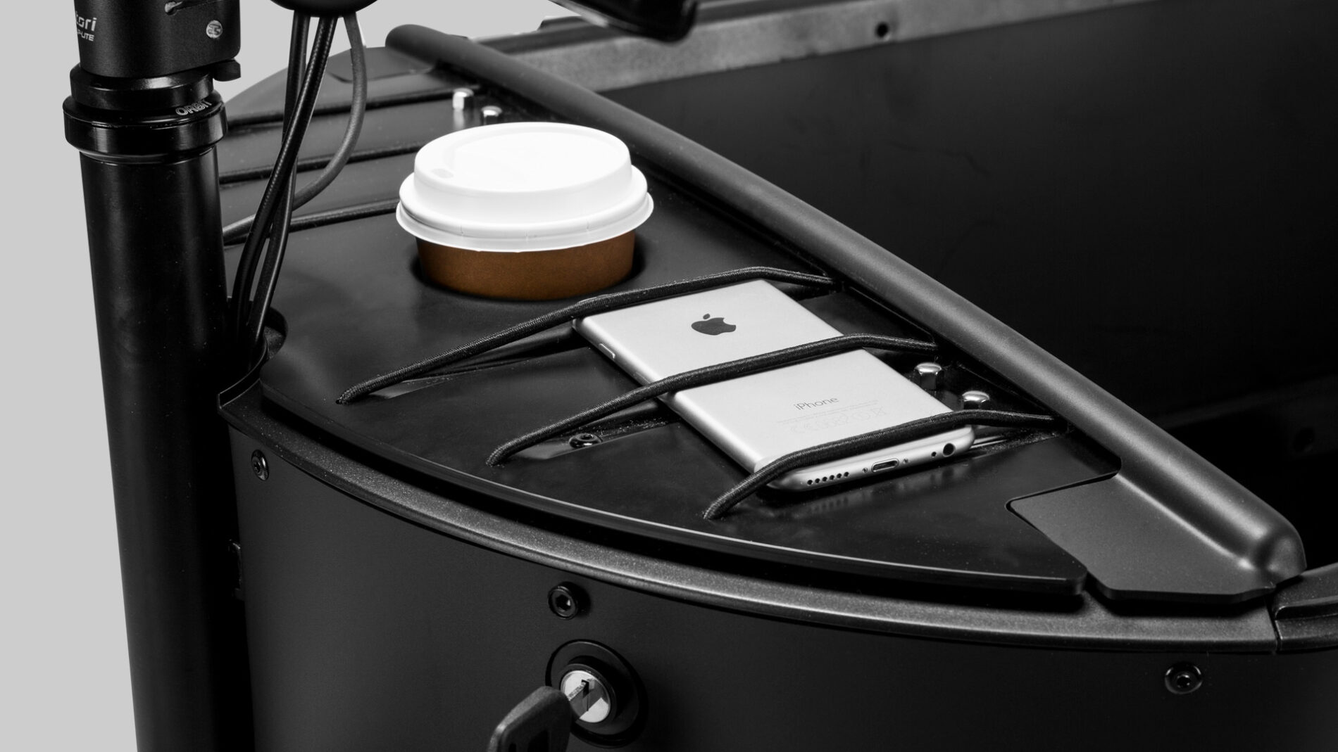 The Mk1-E 3 is a fast, safe and super easy-to-ride e-cargo bike with car-like comfort. It even has a dashboard and cup holders!