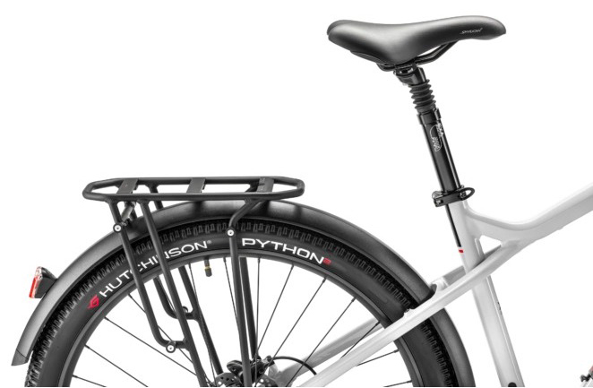 - Has rear rack, metal mudguards and a rear-mount kickstand.