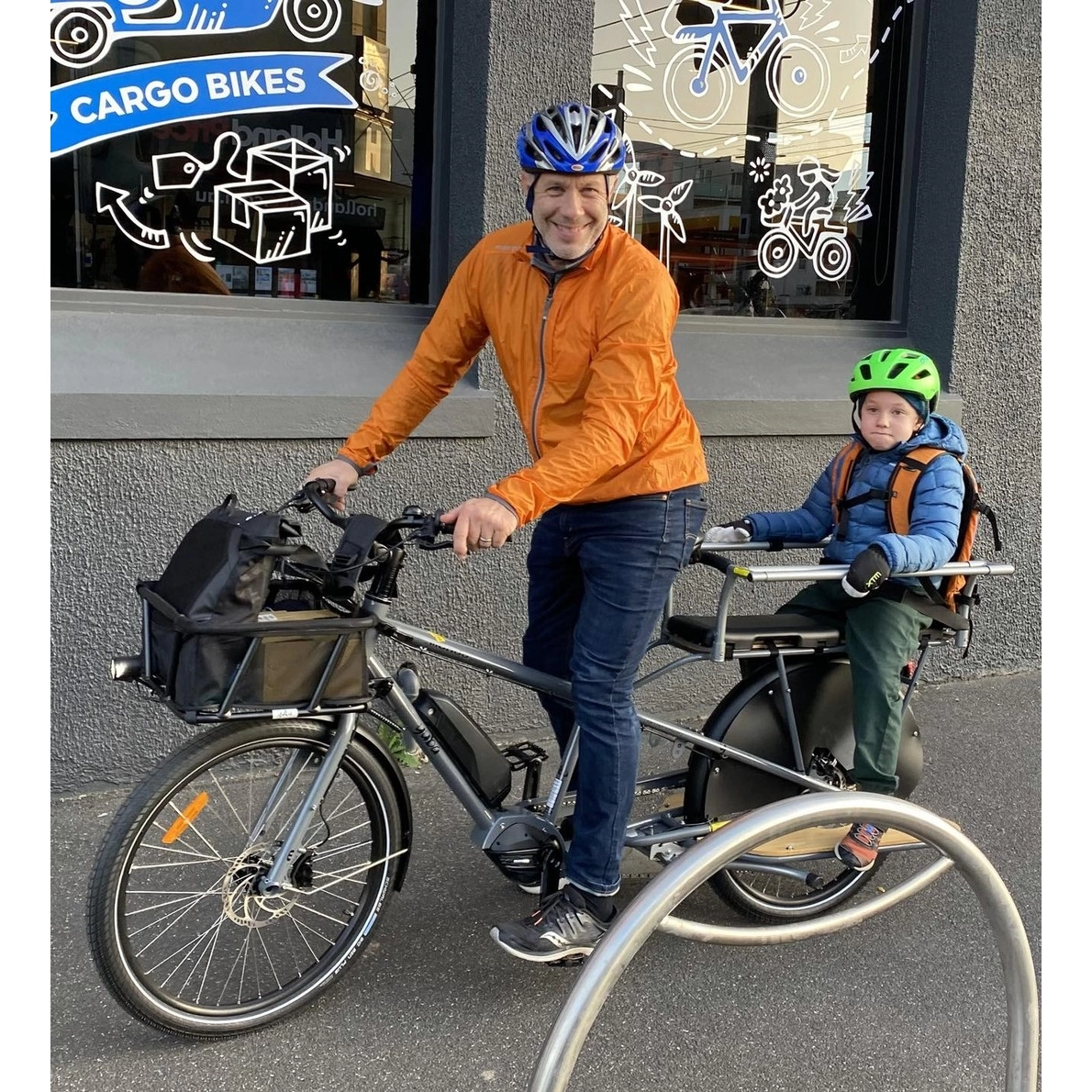 Bruce chose a really good reliable e-bike and accessories to ensure his family keeps using it well into the future – a great idea if you need to carry kids who turn into big kids and into bigger teens or adults who still want to go on the back.