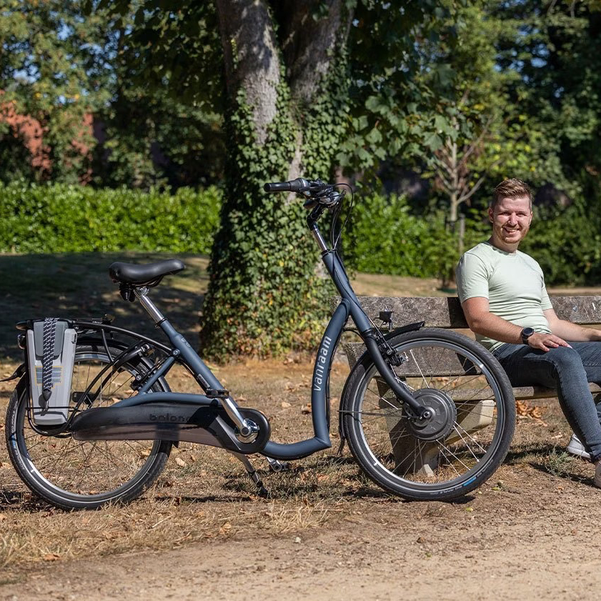 The vanRaam Balance E-bike is a comfortable e-bike with a very low step-through and a uniquely designed frame. With the vanRaam Balance bike, you can always place both your feet on the ground without getting off the saddle and cycle with a comfortable movement of your legs.