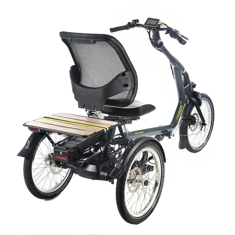 The vanRaam Easy Rider electric trike for adults is designed by the world\'s leading manufacturer of disability and assisted mobility bikes. With a unique low-entry frame and low centre of gravity, this trike is easy to ride and even fits through a normal door! Made to order in the Netherlands.