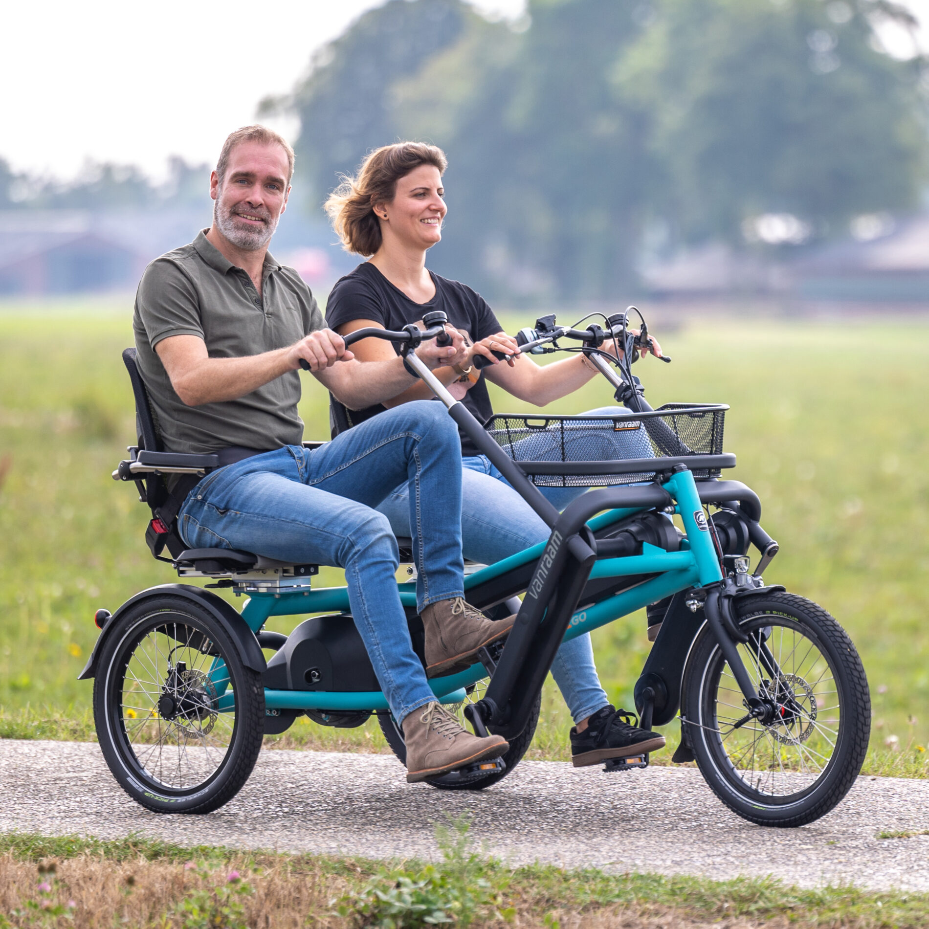 Contact us to Pre-orderThe amazing Dutch-made, electric side-by-side tandem trike – one person steers, and both can pedal. Made to order in the Netherlands.