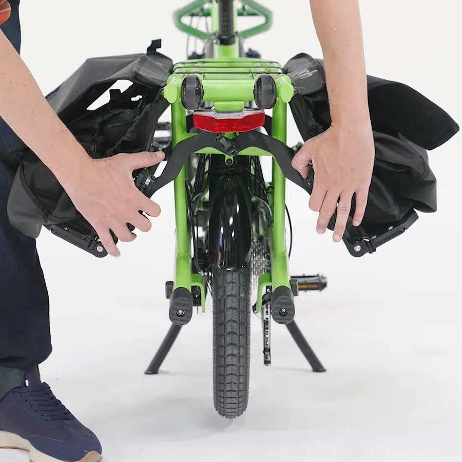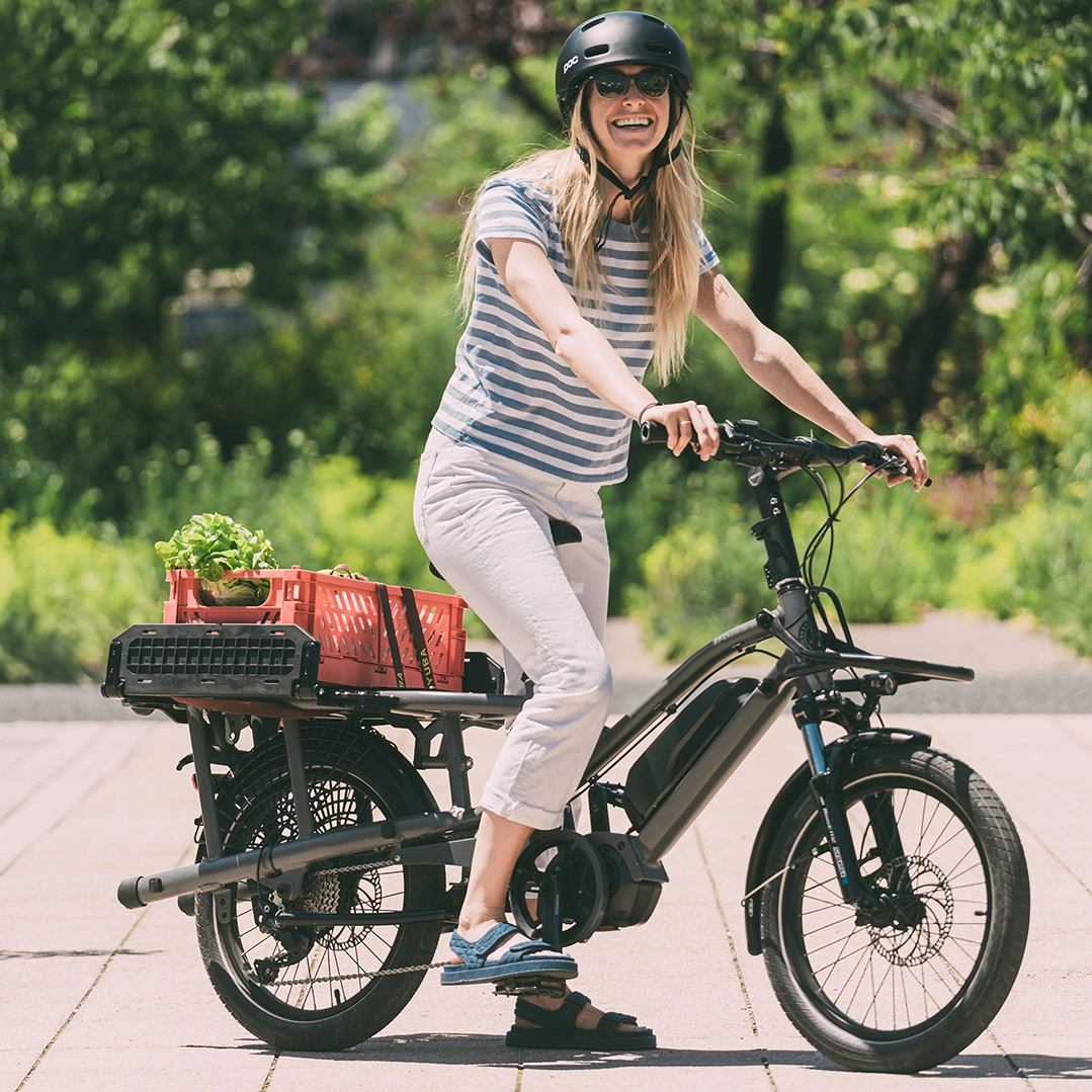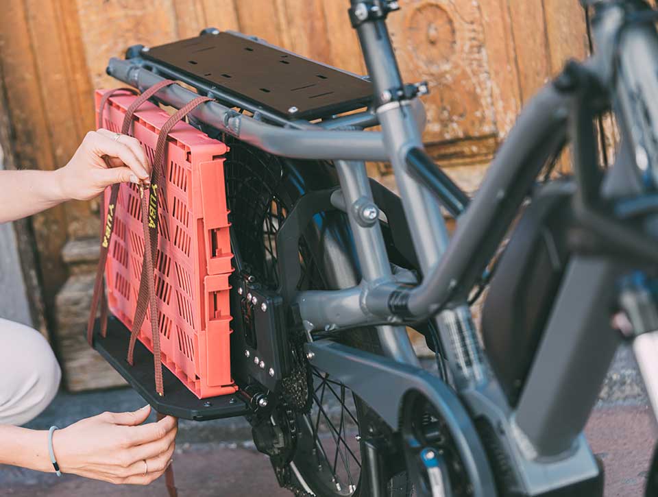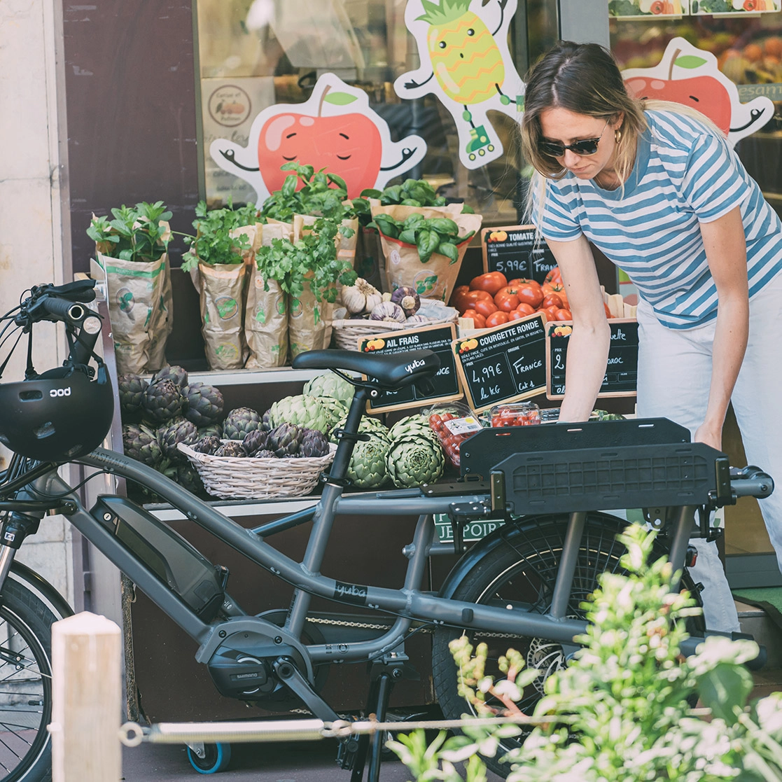 To make things easier for you, Yuba developed a patent-pending rack system, allowing your bike to adapt to any type of cargo. The integrated Dual Rack System (DRS) has 4 different positions that provide unparalleled versatility to adapt to any type of ride on-the-fly. Discover the DRS and change positions in seconds: Sideloader mode, Carry-On mode, Flat mode, or Compact mode. There is always a solution to your situation.